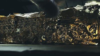 The hand-cut glass shades serve as the canvas for the gilded copper & gold leaf series. Fine-weave charcoal fabrics and solid brass retain each light's natural texture.